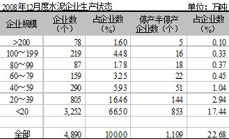 由于2008年水泥需求市場明顯下降,一些大企業(yè)主動進(jìn)行限產(chǎn),以保持市場正常供需關(guān)系。