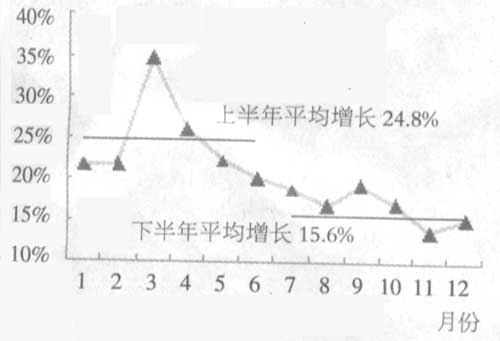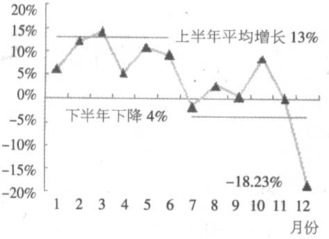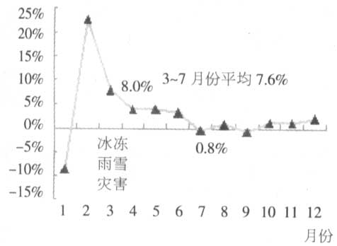 圖2 2008年水泥月產(chǎn)量同比增長速度