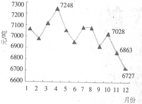 圖5 2008年各月玻璃纖維紗價(jià)格變動趨勢