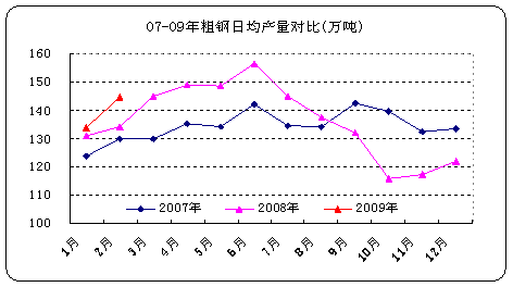 3月10日,從權(quán)威人士處了解到,1月,我國粗鋼日產(chǎn)水平達(dá)到134萬噸,2月份達(dá)到144萬噸。其中,2月份的生產(chǎn)水平已經(jīng)相當(dāng)于年產(chǎn)粗鋼5.26億噸。