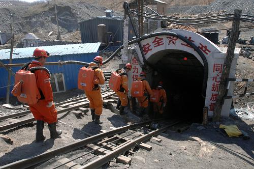 4月6日,救援隊(duì)隊(duì)長在下井搜救前提醒隊(duì)員們下井后的注意事項(xiàng)。從黑龍江省雞西市政府了解到,截止到4月6日14時(shí),雞西金利煤礦透水事故已確認(rèn)有7人遇難,5人仍被困于井下,生還希望不大。雞西市政府表示,只要有一線希望,都會(huì)盡全力救援,目前救援隊(duì)分成4個(gè)組,輪流下井搜救被困礦工。