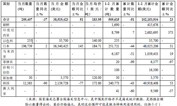 2009年2月我國無煙煤出口分國別統(tǒng)計(jì)