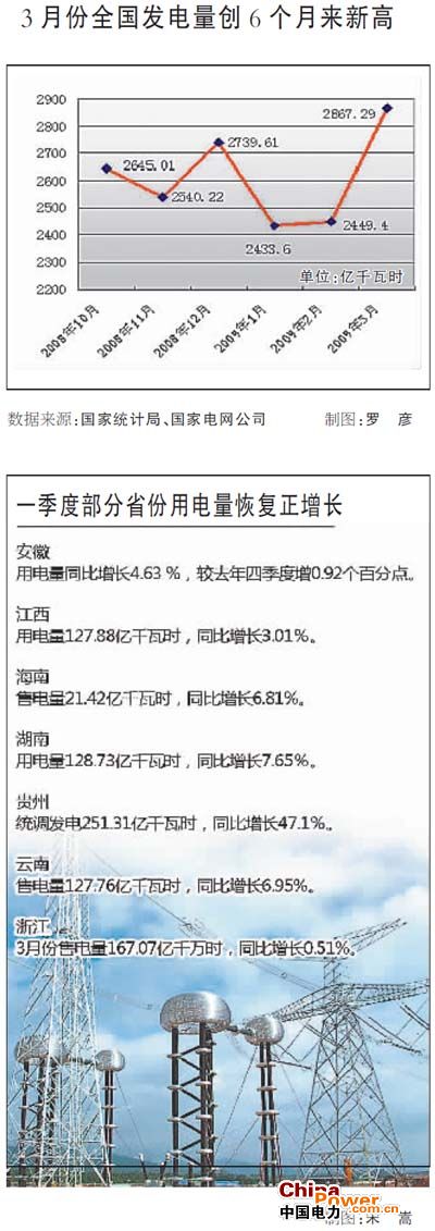 作為反映經(jīng)濟(jì)形勢(shì)的先行指標(biāo),用電量能夠準(zhǔn)確地反映經(jīng)濟(jì)的運(yùn)行態(tài)勢(shì),被認(rèn)為是判斷未來經(jīng)濟(jì)能否轉(zhuǎn)暖的重要風(fēng)向標(biāo)。今年2月份,我國(guó)全社會(huì)用電量出現(xiàn)5個(gè)月以來的首次正增長(zhǎng)。今年一季度,全國(guó)發(fā)電量增速與去年四季度相比,降幅逐步趨緩,出現(xiàn)止跌趨升趨勢(shì)。在剛剛過去的3月份,很多省份的用電量都出現(xiàn)正增長(zhǎng)。用電量的積極變化,無疑給我們?cè)鎏砹藨?zhàn)勝困難的信心。