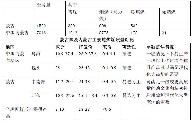 蒙古國及內(nèi)蒙古資源及煤種對比