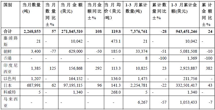 2009年3月煤炭出口分國別統(tǒng)計(jì)