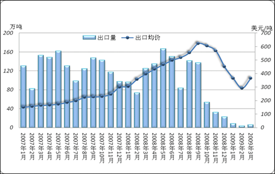 圖7 2007-2009年全國焦炭月出口量對比走勢圖