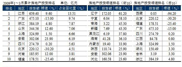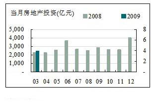 1~3月份房地產(chǎn)投資額為4880.29億元,同比增長4.10%,較2008年同期增速回落了28.2百分點,但與上月增速相比,提高3個百分點。3月份當月完成房地產(chǎn)投資額2482.14億元,同比增長7.27%。似出現(xiàn)房地產(chǎn)回暖跡象,但仍有待時間的考證。