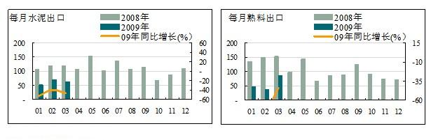 金融危機對整個水泥行業(yè)的影響還在繼續(xù),但程度較上月有所減緩。3月份的水泥出口量為62.83萬噸,環(huán)比下降11.12%;累計出口量184.88萬噸,同比下降46.15%;平均離岸價50.36美元/噸,同比增長15.13%。水泥熟料出口85.45萬噸,環(huán)比上升122.73%;累計出口量169.67萬噸,同比下降61.12%;離岸價35美元/噸,同比增長5.78%。