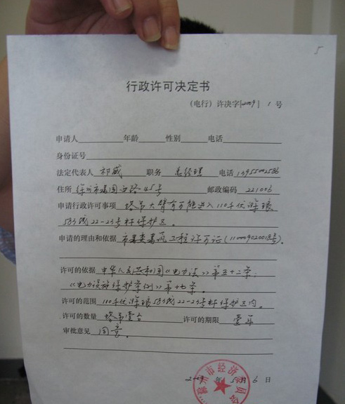 5月6日,安徽省滁州市經委發(fā)出第一張電力行政許可決定書。標志著安徽省滁州市在電力設施保護工作邁向法制化、規(guī)范化的軌道上,樹立起的一個新的里程碑。