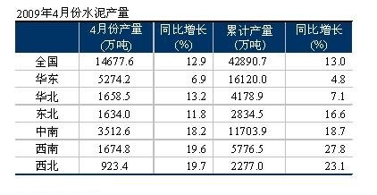 4月份華東地區(qū)水泥產(chǎn)量5,274萬噸,同比增長6.9%,扭轉(zhuǎn)了3月份水泥產(chǎn)量同比負增長的狀況;累計實現(xiàn)水泥產(chǎn)量16,120萬噸,同比增長4.8%。