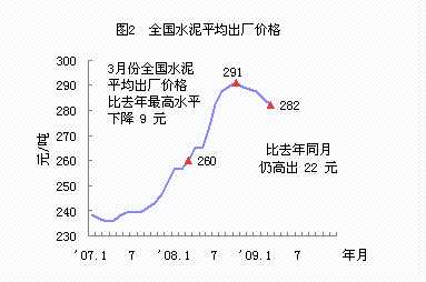 水泥價格連續(xù)四個月下降,但全國水泥價格總水平仍比去年同期高。三月份全國水泥平均出廠價格每噸282元,比去年10月份下降9元,比去年同月高22元(見圖2)。