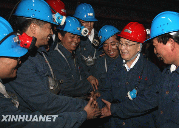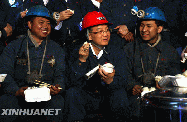5日上午,溫家寶來到大同,專程看望大同煤礦工人。這是總理多年的一個(gè)心愿。(中國政府網(wǎng))