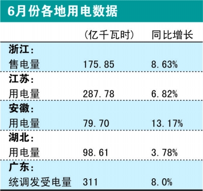安徽省6月當(dāng)月和累計供電量增速均排在國家電網(wǎng)公司前四位。安徽方面的最新統(tǒng)計數(shù)據(jù)顯示,1至6月,該省用電量累計達434.24億千瓦時,增長5.90%;統(tǒng)調(diào)最高用電負(fù)荷達1437.4萬千瓦,同比增長23.77%。其中,6月全社會用電量達79.70億千瓦時,增長13.17%。