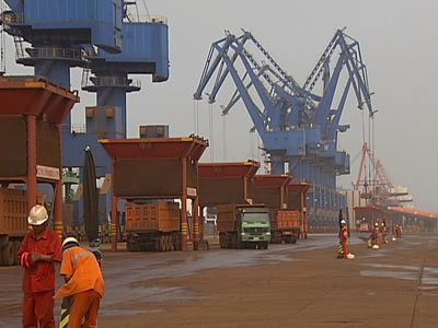 港口工作人員:“每天都保證四條五條大礦船在這卸,但仍然是卸不完!