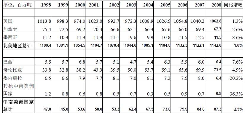 2008年世界各國煤炭產(chǎn)量(百萬噸)