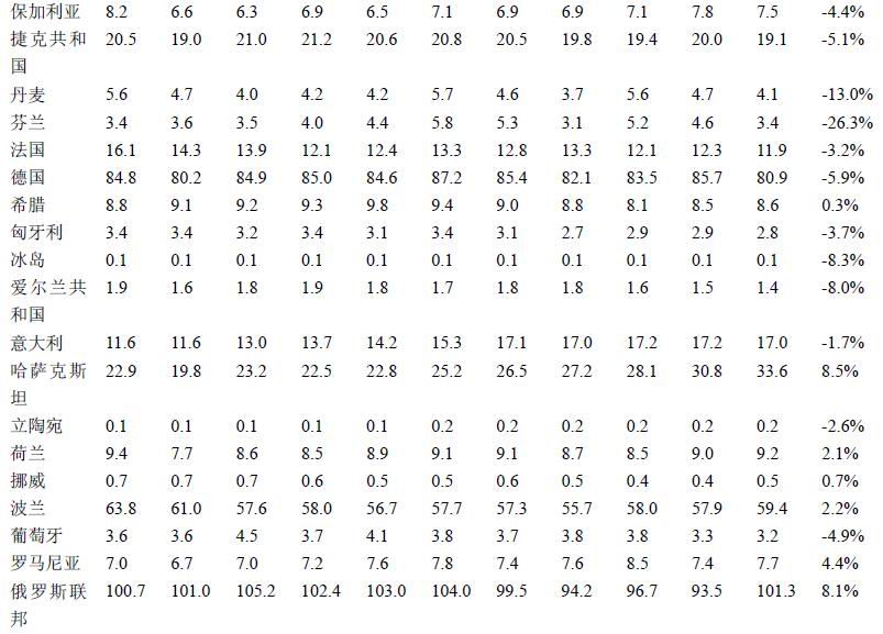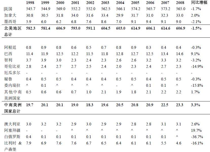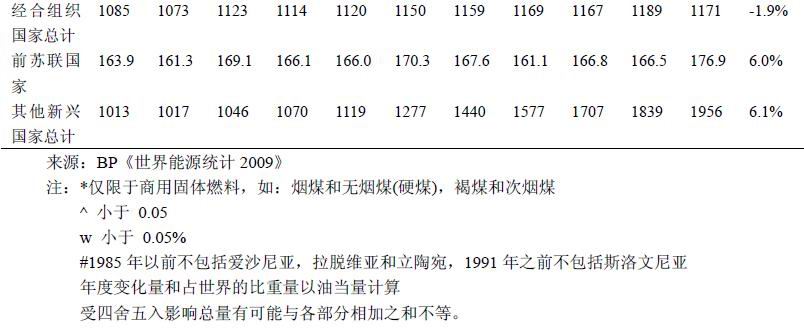 1998年-2008年世界各國煤炭消費量(百萬噸油當(dāng)量)