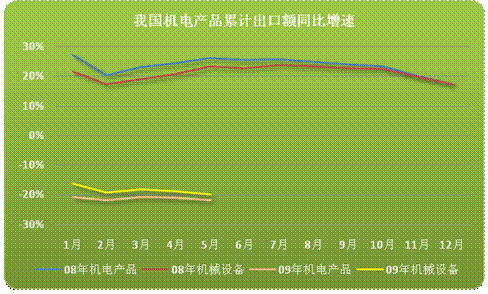 2008年我國(guó)機(jī)電產(chǎn)品的整體出口增速?gòu)?qiáng)勁,進(jìn)入4季度后出現(xiàn)疲軟的趨勢(shì),最后以弱勢(shì)收官。2009年機(jī)電產(chǎn)品出口形勢(shì)較之08年出現(xiàn)了天昂之別,同比保持20%的負(fù)增長(zhǎng)。分析認(rèn)為:機(jī)電出口訂單下降的主要原因,一是國(guó)際上對(duì)高價(jià)商品的購(gòu)買力下降;二是國(guó)外市場(chǎng)正在去庫(kù)存,對(duì)新產(chǎn)品的采購(gòu)下降,另部分已經(jīng)完成庫(kù)存消化的企業(yè)也盡量減少了備貨量。