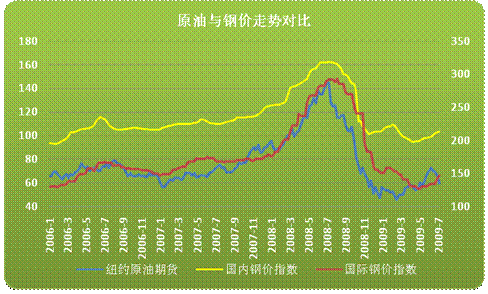 隨著國(guó)際金融期貨領(lǐng)域的高速發(fā)展,人們對(duì)于期貨市場(chǎng)價(jià)格發(fā)現(xiàn)功能的頂禮膜拜,導(dǎo)致其影響力的進(jìn)一步延伸。近幾年來(lái),鋼鐵市場(chǎng)行情走勢(shì)緊隨原油期貨市場(chǎng),與之產(chǎn)生了高度的關(guān)聯(lián)性。尤其是今年上半年在原油的金融屬性在主導(dǎo)價(jià)格時(shí),國(guó)際鋼鐵市場(chǎng)也出現(xiàn)了一波逆基本面的跟漲行情,市場(chǎng)的通脹預(yù)期也真切的表現(xiàn)在鋼鐵產(chǎn)業(yè)。