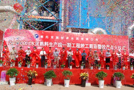 7月18日,內(nèi)蒙古鄂爾多斯市棋盤(pán)井鎮(zhèn)鑫宇集團(tuán)恒卓水泥公司建設(shè)工期近一年的兩條日產(chǎn)2500噸新型干法熟料水泥生產(chǎn)線一期工程在此成功進(jìn)行點(diǎn)火投產(chǎn)儀式。