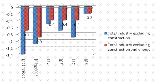 歐元區(qū)經(jīng)濟從整體的走勢看,出現(xiàn)了好轉(zhuǎn)的跡象,但仍然處于深度衰退中。5月份生產(chǎn)者價格指數(shù)降幅進一步收窄(不包括住房和能源),降幅為0.2%,比3-4月份收窄了0.2個百分點,但比上年同期下降了2.9%。生產(chǎn)者價格指數(shù)連續(xù)第10個月下滑,5月份較上年同期下降5.8%,是自1982年1月開始編制該數(shù)據(jù)以來的最大年度降幅。能源價格較上月上升0.2%,但與上年同期相比仍低14.0%,是自1986年12月以來的最大降幅。
