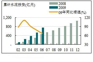 從各省份來看,四川災(zāi)后重建刺激了水泥投資的增長。1~6月份累計水泥投資達到112.46億元,同比增速241.8%(增速排名第六位),占全國比重上升為25.19%。寧夏、甘肅、重慶、西藏、山西等中西部地區(qū)受中部崛起、西部大開發(fā)等政策的影響,城鎮(zhèn)化建設(shè)、能源開發(fā)步伐加快,投資增速均排名前列。其中,寧夏增速高達976.3%,居首位;甘肅、重慶分別為485.5%、384.9%,排第二、三位。