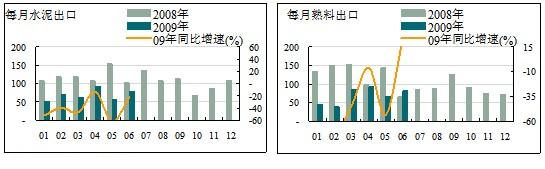 6月份水泥出口量為78.8萬噸,較5月份環(huán)比增加了21.35萬噸,同比增速為-22.6%;累計出口量同比較5月份提升3個多百分點,為-41.35%;平均離岸價為47.03美元/噸,比5月份每噸下降近3美元,但較2008年同期增長3.3美元/噸。