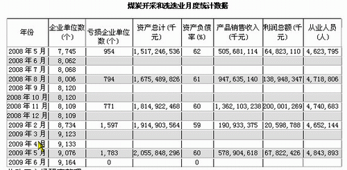 2009年1-5月煤炭開采和洗選業(yè)統(tǒng)計數(shù)據(jù)