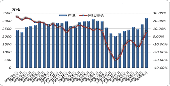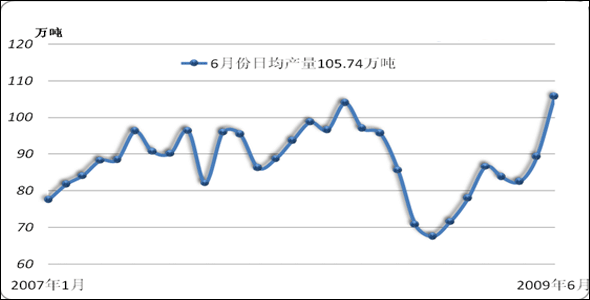 伴隨著焦炭市場(chǎng)的逐漸轉(zhuǎn)暖,我們同時(shí)也看到,7月份的漲價(jià)是在6月份焦炭創(chuàng)紀(jì)錄的產(chǎn)量基礎(chǔ)上進(jìn)行的。據(jù)統(tǒng)計(jì),2009年6月,中國(guó)單月焦炭產(chǎn)量達(dá)到了3172.29萬(wàn)噸,焦炭日均產(chǎn)量也達(dá)到了105.74萬(wàn)噸。據(jù)了解,進(jìn)入7月份,國(guó)內(nèi)獨(dú)立焦化企業(yè)的開工率逐步提高,除山西部分焦化企業(yè)開工率尚保持在70%左右外,河北、山東及河南等省的焦化企業(yè)均保持滿負(fù)荷運(yùn)轉(zhuǎn)水平。