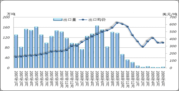 從上半年我國(guó)焦炭出口的貿(mào)易數(shù)據(jù)來(lái)看,因外需低迷,我國(guó)焦炭出口市場(chǎng)幾乎處于停滯狀態(tài)。來(lái)自中國(guó)主要焦炭出口大港的數(shù)據(jù)顯示,自今年年初以來(lái),天津港及連云港的焦炭外貿(mào)貨船鮮有裝貨,而天津港的焦炭場(chǎng)存量也長(zhǎng)期保持在180萬(wàn)噸左右的水平。二季度因華東地區(qū)焦炭貿(mào)易相對(duì)較為活躍,連云港焦炭吞吐量也開始有所增加。對(duì)于當(dāng)前低迷的焦炭出口形勢(shì),市場(chǎng)參與各方都有不同的看法。來(lái)自貿(mào)易商的觀點(diǎn)認(rèn)為,當(dāng)前國(guó)外鋼鐵企業(yè)尚處于金融危機(jī)后期的生產(chǎn)恢復(fù)之中,有部分企業(yè)已經(jīng)開始計(jì)劃增加焦炭的采購(gòu)量。然而,中國(guó)焦炭出口需要加征40%的高額關(guān)稅,貿(mào)易商對(duì)外提供的焦炭出口報(bào)價(jià)卻遠(yuǎn)遠(yuǎn)高于國(guó)外采購(gòu)商的意向接收價(jià)格,供需雙方的意向價(jià)格相距甚遠(yuǎn)成為阻礙焦炭出口的主要因素。來(lái)自政策制定方及相關(guān)協(xié)會(huì)的觀點(diǎn)認(rèn)為,當(dāng)前中國(guó)焦炭出口大幅回落主要是受外需極度低迷的影響。盡管近幾個(gè)月以來(lái)鋼材需求和鋼鐵生產(chǎn)可能會(huì)技術(shù)性反彈,但是預(yù)計(jì)在相當(dāng)長(zhǎng)的時(shí)間內(nèi)仍不會(huì)到達(dá)此前的紀(jì)錄高位。即使將關(guān)稅征收比例下調(diào),焦炭出口仍將難以恢復(fù)到去年上半年的水平。