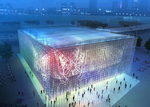 95攝氏度左右的熱水,在工業(yè)領(lǐng)域大量存在,卻被白白丟棄或需要降溫后再使用。在中國2010年上海世界博覽會(簡稱上海世博會)上,上海企業(yè)聯(lián)合館力圖改變這一狀況,將在全球率先實踐低溫?zé)崴l(fā)電技術(shù),探索人類利用能源的全新途徑。圖為上海世博會上海企業(yè)聯(lián)合館夜景效果圖。