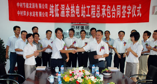 近日,中材萍鄉(xiāng)日產(chǎn)2500噸新型干法熟料生產(chǎn)線配套4.5兆瓦余熱發(fā)電項目總承包合同在天津簽訂。