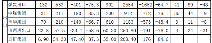 2009年1-6月全國煤炭出口及庫存統(tǒng)計