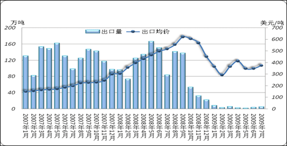 圖7 2007-2009年全國(guó)焦炭月出口量對(duì)比走勢(shì)圖