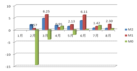8月份貨幣供應(yīng)量環(huán)比增速大幅下降,市場(chǎng)流動(dòng)性稍嫌不足。8月末,M2余額為57.67萬億元,同比增長28.53%,增幅比上年末高10.71個(gè)百分點(diǎn),比上月末高0.09個(gè)百分點(diǎn);M1余額為20.04萬億元,同比增長27.72%,比上月末高1.34個(gè)百分點(diǎn);M0余額為3.44萬億元,同比增長11.52%。