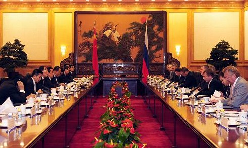 國務(wù)院副總理王岐山11日在人民大會堂同俄羅斯副總理謝欽舉行中俄能源談判代表第五次會晤。