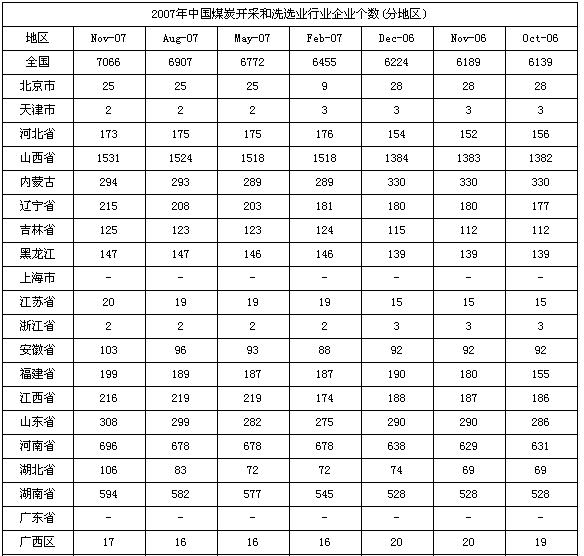 2007年中國煤炭開采和洗選業(yè)行業(yè)統(tǒng)計(jì)