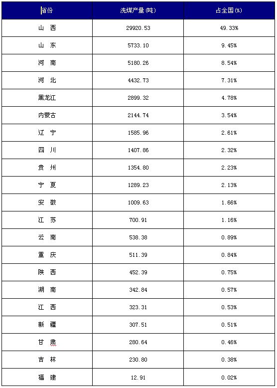 2007年我國分地區(qū)洗煤產量統(tǒng)計