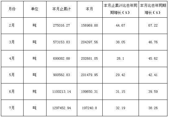 2009年1-7月浙江焦炭產(chǎn)量統(tǒng)計