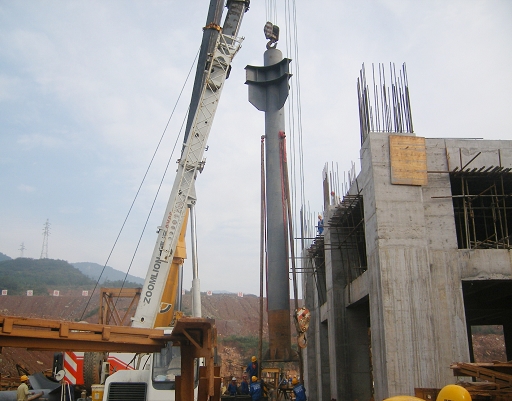 金秋十月,秋高氣爽。2009年10月16日上午9時38分,伴隨著陣陣濃烈的鞭炮聲,由邯鄲中材承建的江油紅獅水泥有限公司5000t/d水泥生產(chǎn)線窯尾塔架第一鉤吊裝開始。