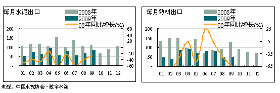 9月份熟料出口較8月份繼續(xù)呈下降的態(tài)勢(shì),僅為45.22萬噸,同比下降了64.01%;累計(jì)出口量為583.29萬噸,同比下降了44.09%。