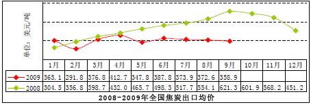 9 月,焦炭市場(chǎng)呈現(xiàn)普跌局面,跌幅不大,焦炭日均產(chǎn)量仍有小幅增長(zhǎng),焦炭出口情況仍不理想,出口均價(jià)繼續(xù)下跌。