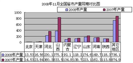 2007-2008年中國主要省份焦炭產(chǎn)量對(duì)比圖