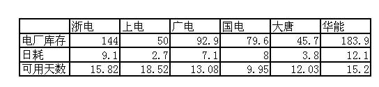 2009年11月03日電廠庫存及日耗情況統(tǒng)計