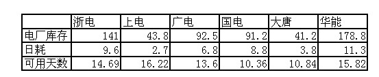 2009年11月06日電廠庫存及日耗情況統(tǒng)計(jì)