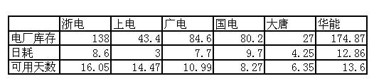 2009年11月11日電廠庫存及日耗情況統(tǒng)計