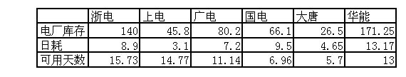 2009年11月16日直供電廠煤炭庫(kù)存統(tǒng)計(jì)