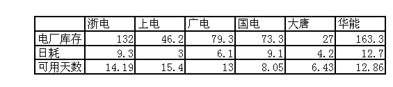 2009年11月17日直供電廠煤炭庫存統(tǒng)計(jì)