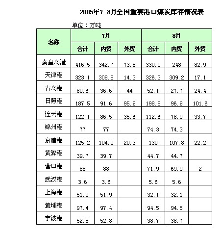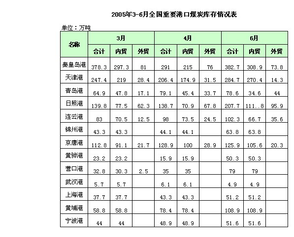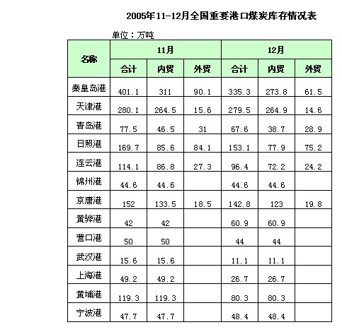 2005年全國重要港口煤炭庫存情況統(tǒng)計