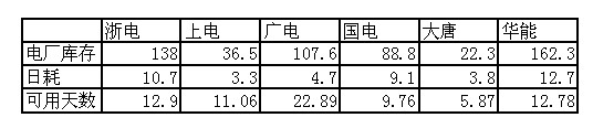 2009年11月24日直供電廠庫存統(tǒng)計