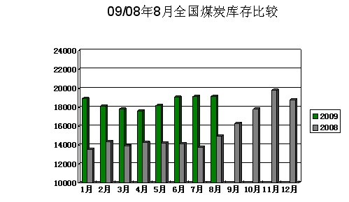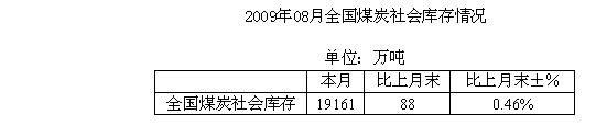2009年8月全國煤炭社會庫存統(tǒng)計(jì)